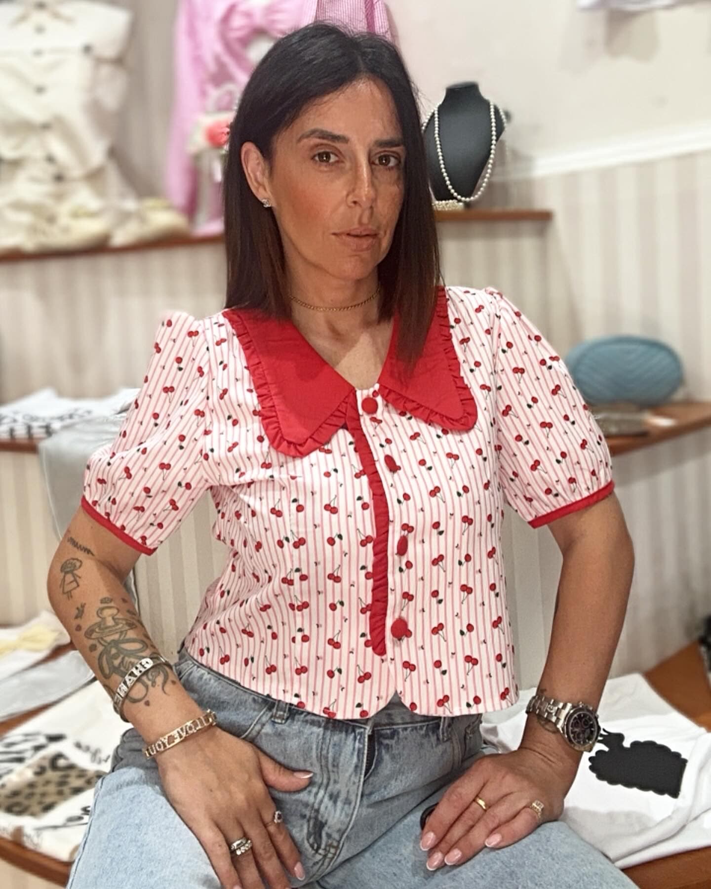 Camicia con stampa di ciliegie e colletto