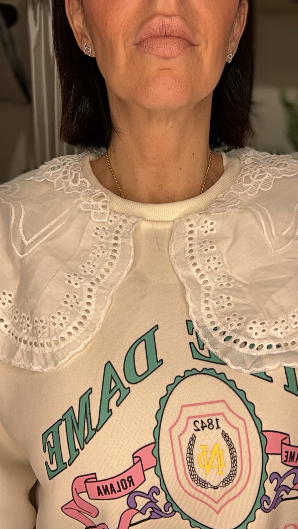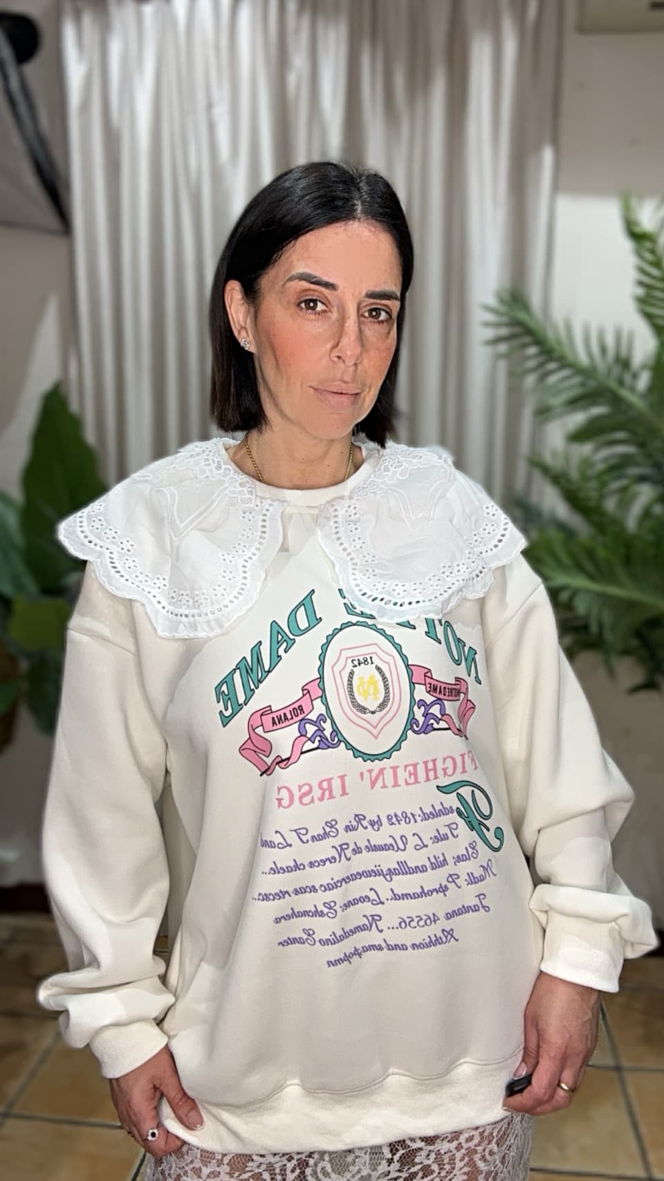 Felpa di ottimo cotone , con colletto ricamato , taglia unica